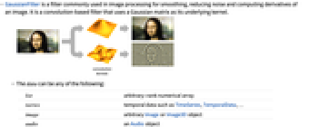 - GaussianFilter is a filter commonly used in image processing for smoothing, reducing noise and computing derivatives of an image. It is a convolution-based filter that uses a Gaussian matrix as its underlying kernel.