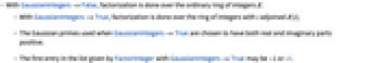 . - The Gaussian primes used when GaussianIntegers->True are chosen to have both real and imaginary parts positive.