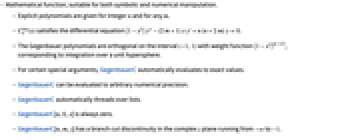 , corresponding to integration over a unit hypersphere. - For certain special arguments, GegenbauerC automatically evaluates to exact values.