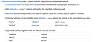 - GenerateSymmetricKey[] uses a system-specific, high-entropy randomness source.