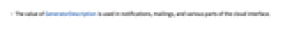 - The value of GeneratorDescription is used in notifications, mailings, and various parts of the cloud interface.