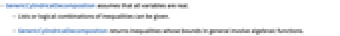- GenericCylindricalDecomposition returns inequalities whose bounds in general involve algebraic functions.