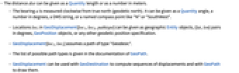- GeoDisplacement[loc1,loc2] assumes a path of type "Geodesic".