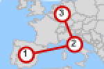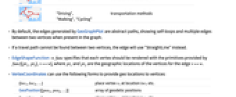 "Driving","Walking","Cycling" transportation methods - By default, the edges generated by GeoGraphPlot are abstract paths, showing self-loops and multiple edges between two vertices when present in the graph.