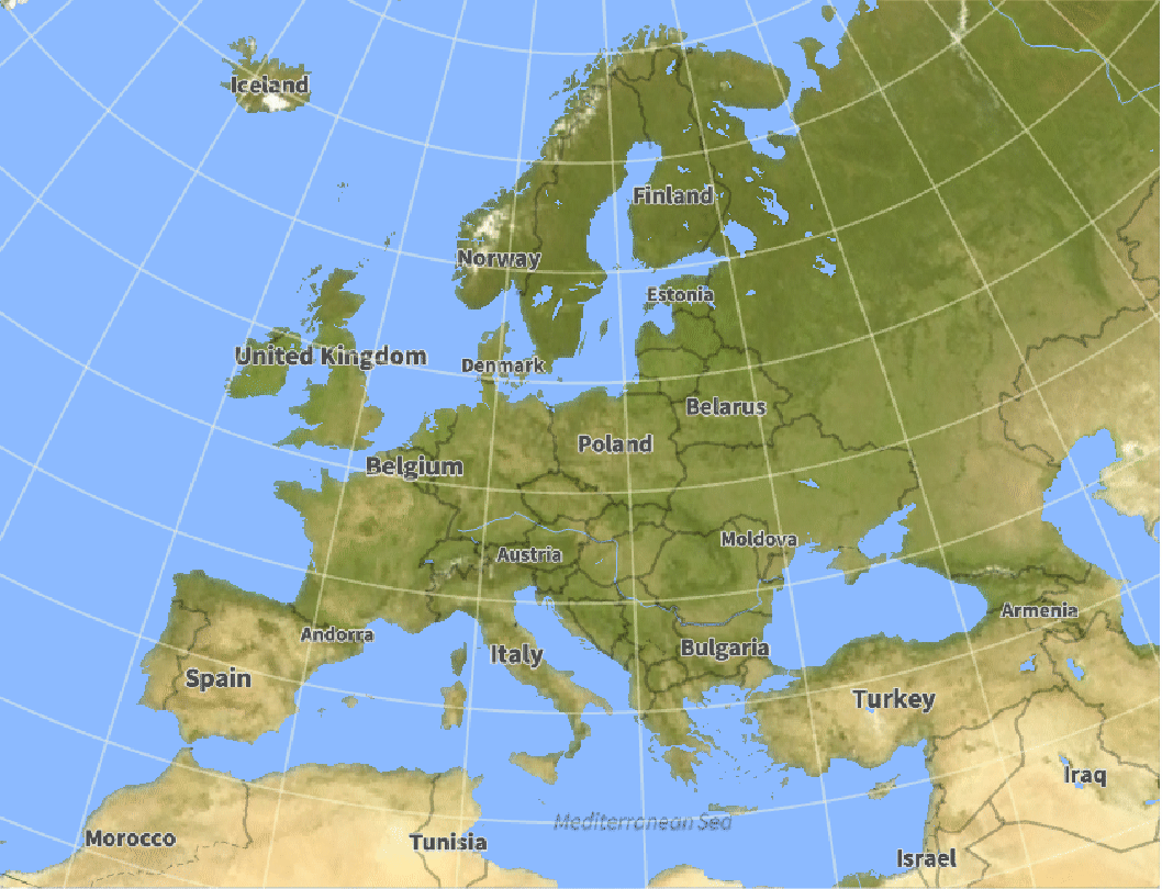 Intermediate-scale maps use the Lambert azimuthal projection centered at the geo range of the map: