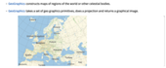 - GeoGraphics takes a set of geo graphics primitives, does a projection and returns a graphical image.