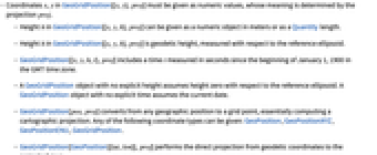 - A GeoGridPosition object with no explicit height assumes height zero with respect to the reference ellipsoid. A GeoGridPosition object with no explicit time assumes the current date.