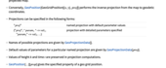- Default values of parameters for a particular named projection are given by GeoProjectionData[proj].