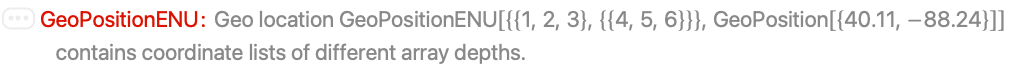 - GeoPositionENU[GeoPositionENU[enu,p1],p2] converts between two different ENU systems.