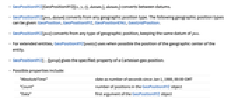 - GeoPositionXYZ[pos] converts from any type of geographic position, keeping the same datum of pos.