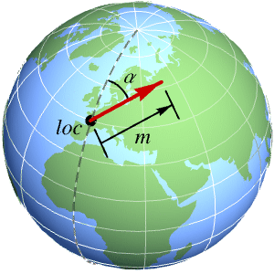 represents a horizontal two-dimensional vector of magnitude m and bearing α at geo location loc.