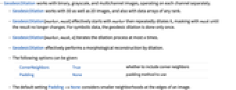 - GeodesicDilation works with 3D as well as 2D images, and also with data arrays of any rank.