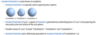 - GeodesicPolyhedron is typically used to approximate a sphere.