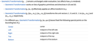 - GeometricTransformation[g,…] remains unchanged under evaluation, but affects how g is rendered.