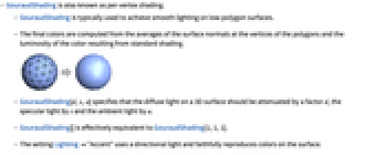 - GouraudShading[d,s,a] specifies that the diffuse light on a 3D surface should be attenuated by a factor d, the specular light by s and the ambient light by a.
