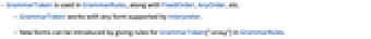 - GrammarToken is used in GrammarRules, along with FixedOrder, AnyOrder, etc.