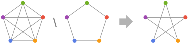 Wolfram Research (2010), GraphDifference, Wolfram Language function, https://reference.wolfram.com/language/ref/GraphDifference.html (updated 2015).