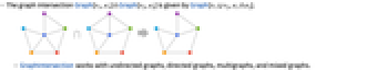 - The graph intersection Graph[v1,e1]⋂Graph[v2,e2] is given by Graph[v1⋃v2,e1⋂e2].
