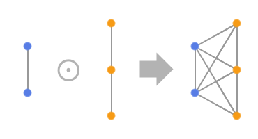 - GraphJoin[g1,g2] returns GraphDisjointUnion[g1,g2] together with all edges between each vertex of IndexGraph[g1] and each vertex of IndexGraph[g2,n+1], where n is the VertexCount for g1.