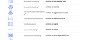 "ClosestPacking" approximate closest packing from the top left "ClosestPackingCenter" approximate closest packing from the center "Layered" arrange in layers starting at the top left "LayeredLeft" arrange in layers starting at the left "LayeredTop" arrange in layers starting at the top "NestedGrid" arrange on a nested grid