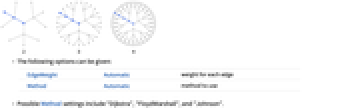 EdgeWeight Automatic weight for each edge Method Automatic method to use - Possible Method settings include "Dijkstra", "FloydWarshall", and "Johnson".