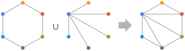 - The graph union Graph[v1,e1]⋃Graph[v2,e2] is given by Graph[v1⋃v2,e1⋃e2].