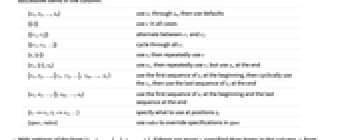 {s1,s2,…,sn} use s1 through sn, then use defaults {{c}} use c in all cases {{c1,c2}} alternate between c1 and c2 {{c1,c2,…}} cycle through all ci {s,{c}} use s, then repeatedly use c {s1,{c},sn} use s1, then repeatedly use c, but use sn at the end {s1,s2,…,{c1,c2,…},sm,…,sn} use the first sequence of si at the beginning, then cyclically use the ci, then use the last sequence of si at the end {s1,s2,…,{},sm,…,sn} use the first sequence of si at the beginning and the last sequence at the end {i1->v1,i2->v2,…} specify what to use at positions ik {spec,rules} use rules to override specifications in spec - With settings of the form {s1,s2,…,{…},sm,…,sn}, if there are more si specified than items in the column, si from the beginning are used for the first items, and ones from the end are used for the last items.