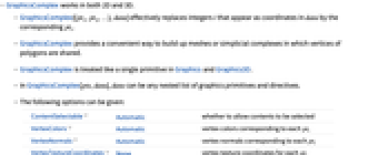 - GraphicsComplex provides a convenient way to build up meshes or simplicial complexes in which vertices of polygons are shared.