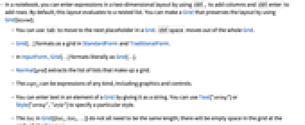 to add rows. By default, this layout evaluates to a nested list. You can make a Grid that preserves the layout by using Grid[layout]. - You can use
