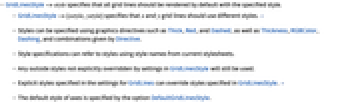 - GridLinesStyle->style specifies that all grid lines should be rendered by default with the specified style.
