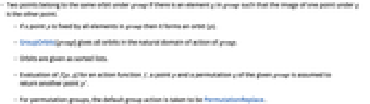 - Two points belong to the same orbit under group if there is an element g in group such that the image of one point under g is the other point.