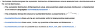 - The Gumbel distribution gives the asymptotic distribution of the minimum value in a sample from a distribution such as the normal distribution.