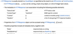 - HTTPResponse is usually stored in a CloudObject or specified as the result in an APIFunction or FormFunction.