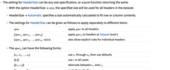 - With the option HeaderSizesize, the specified size will be used for all headers in the dataset.