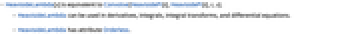 - HeavisideLambda[x] is equivalent to Convolve[HeavisidePi[t],HeavisidePi[t],t,x].