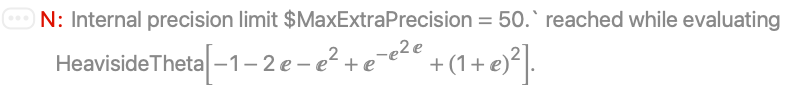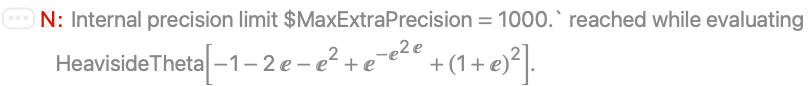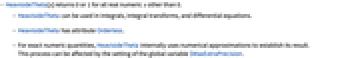 - For exact numeric quantities, HeavisideTheta internally uses numerical approximations to establish its result. This process can be affected by the setting of the global variable $MaxExtraPrecision.