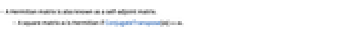 - A square matrix m is Hermitian if ConjugateTranspose[m]m.