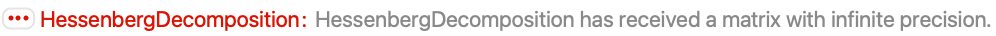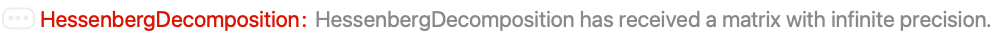 Exact matrices must be numericized to be used with HessenbergDecomposition: