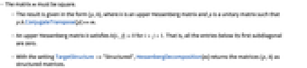 . That is, all the entries below its first subdiagonal are zero. - With the setting TargetStructure->"Structured", HessenbergDecomposition[m] returns the matrices {p,h} as structured matrices.