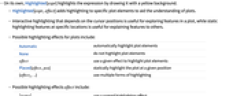 - Highlighted[expr,effect] adds highlighting to specific plot elements to aid the understanding of plots.
