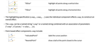 "YSlice" highlight all points along a horizontal slice - The highlighting specification {comp1,comp2,…} uses the individual component effects compi to construct an overall effect.