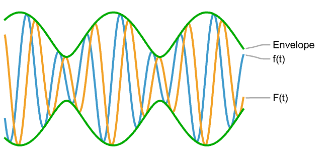 The envelope of an oscillating signal is a smooth curve outlining its extremes, and it is the magnitude of the analytic representation: