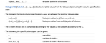 {colx,coly} histogram values {x,y} from colx and coly {{colx1,coly1},{colx2,coly2},…} histogram values from multiple pairs of columns - The