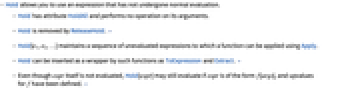 - Hold has attribute HoldAll and performs no operation on its arguments.