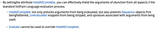- HoldAllComplete not only prevents arguments from being evaluated, but also prevents Sequence objects from being flattened, Unevaluated wrappers from being stripped, and upvalues associated with arguments from being used.