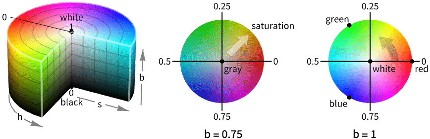 - The parameters h, s, b, and a must all be between 0 and 1. Values of s, b, and a outside this range are clipped. Values of h outside this range are treated cyclically. »