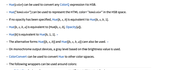 - Hue[color] can be used to convert any ColorQ expression to HSB.