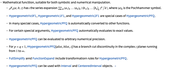 - In many special cases, HypergeometricPFQ is automatically converted to other functions.