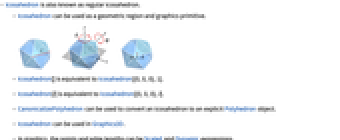 - CanonicalizePolyhedron can be used to convert an icosahedron to an explicit Polyhedron object.