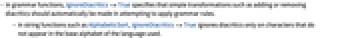 - In grammar functions, IgnoreDiacritics->True specifies that simple transformations such as adding or removing diacritics should automatically be made in attempting to apply grammar rules.